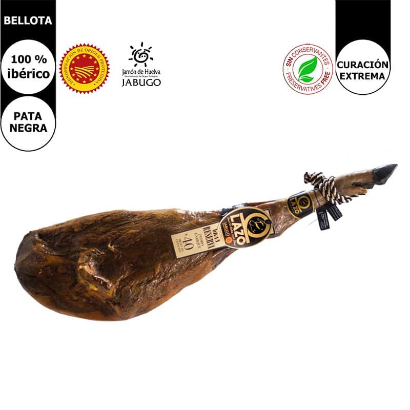 La curación de más de 40 meses convierte cada pieza en una obra maestra de paciencia y tradición, desarrollando matices de sabor que solo se logran con un proceso tan prolongado y cuidado. Este jamón se presenta con la etiqueta especial "Pedro Enrique", que identifica esta exclusiva selección de Jamones Lazo, diferenciándose por su producción limitada y su elevada calidad.